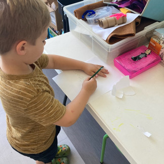 With an influx of cardboard this week, there was also steady stream of creativity. This creativity led to collaboration and many new ideas. Every morning kids came in asking about the glue gun, was there enough paper, someone wanted to use the beads. Loose parts came from every nook and cranny, then new creations began to fill the shelves. Each new masterpiece inspired another and another.